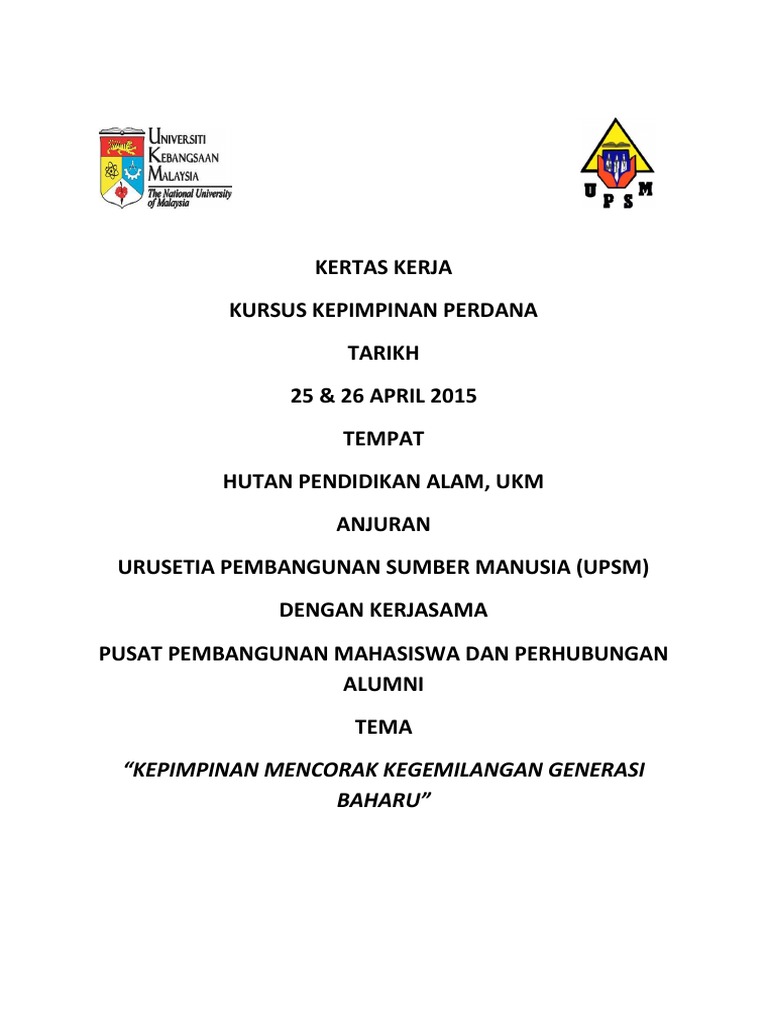 Related : Kertas Kerja Kursus Kepimpinan Kokurikulum - Kursus kepimpinan kelab / persatuan / sukan / unit beruniform..