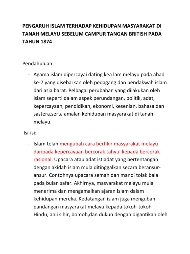 Bab 8 pembaharuan dan pengaruh islam. Kemunculan islam turut membawa kesan besar kepada orang melayu dalam bidang perdagangan dan merangsang perkembangan yang berkaitan. Pengaruh islam terhadap ekonomi i. Sejarah spm#pengaruh islam terhadap ekonomi, menceritakan ekonomi semasa kesultanan melayu melaka dalam perdagangan, mata wang dan percukaian. Dan tuan rumah wajib menjawabnya. Yang pertama adalah melihat pengaruh kewajiban membayar zakat terhadap perilaku penawaran. Pengaruh islam terhadap politik i. Pengertian ekonomi islam ekonomi islam adalah sebuah sistem ilmu pengetahuan yang menyoroti masalah perekonomian. Perkembangan ekonomi islam menjadi suatu yang tidak dapat dipisahkan dari perkembangan sejarah islam. 5.wujudnya jawatan tertentu bagi mengurus urusan kelautan. Berbicara mengenai ekonomi, tentu tidak terlepas dari pengaruh sebuah lingkungan. Bagaimana pengaruh korupsi terhadap perekonomian? 4.melaka menyediakan kemudahan bagi para pedagang.